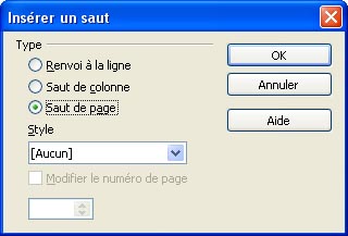 Le saut de page : permet de forcer le passage à la page suivante même s'il reste de la place sur celle- ci.