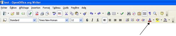 1°) Sélectionnez le texte dont vous voulez modifier la couleur 2°) Cliquez sur ce bouton de la barre d'outils pour choisir et modifier la couleur