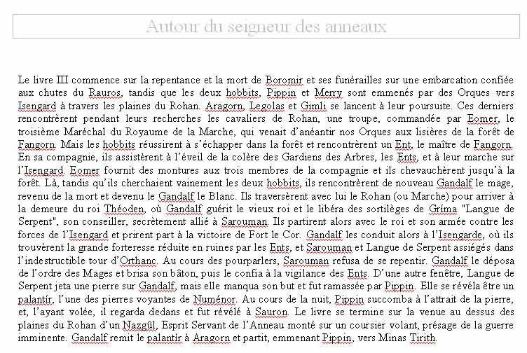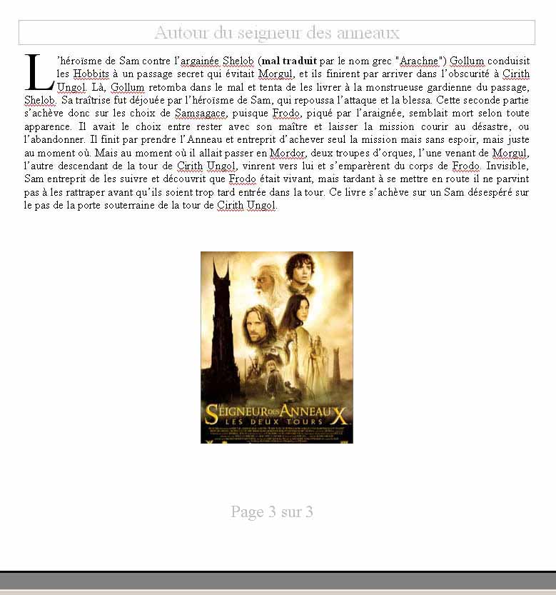en rapport avec le seigneur des anneaux à la fin du document (Faire