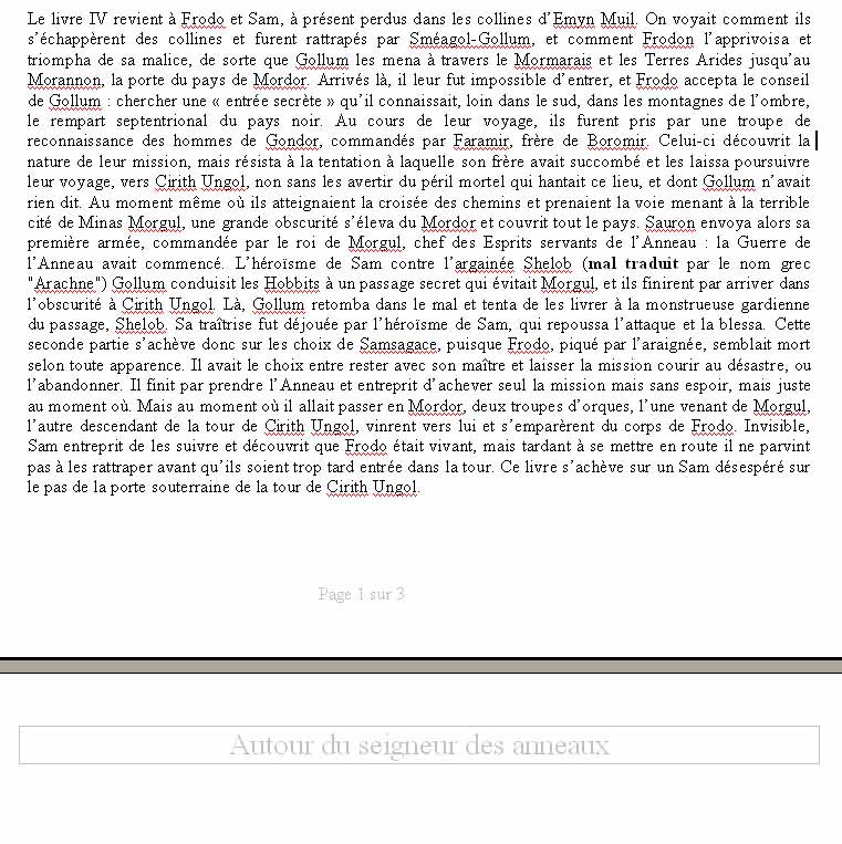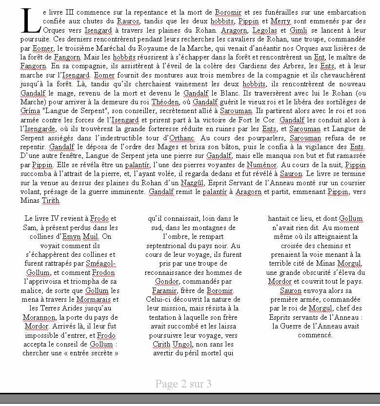 5°) A la page 2 mettre en colone le paragraphe de "Le livre IV" à "La guerre de l'anneau avait commencé"